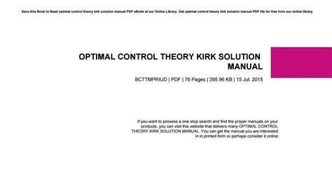 Read Online Optimal Control Theory Kirk Solution Manual Reader Google eBookstore